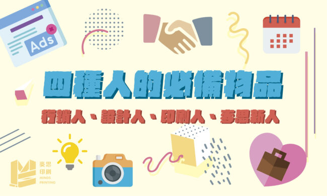 四種人的必備物品:行銷人、設計人、印刷人、麥思新人 主題知識文By mindscmyk2021 年 3 月 5 日各職業需要擁有的能力不同,邁向專業之路一定需要一些必備單品 你是誰?你是哪種人? 下列為麥編假想…