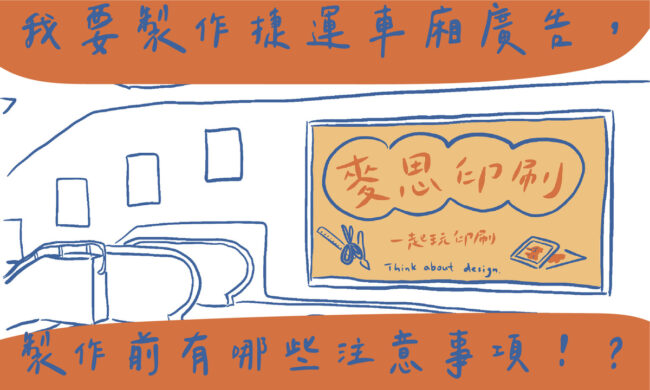 我要製作捷運車廂廣告,製作前有哪些注意事項!? 主題知識文By mindscmyk2021 年 2 月 17 日唉~那些一般的廣告製作物我都知道怎麼發包了啦!來點進階的吧? 大大小小的廣告,在捷運內又要怎麼呈現?要設計多大…